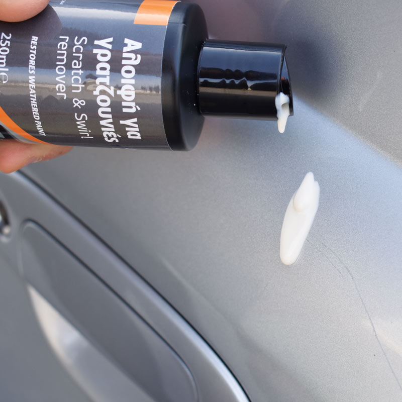 • Премахване на драскотини: Премахва малки драскотини и следи от повърхността на автомобила ви.